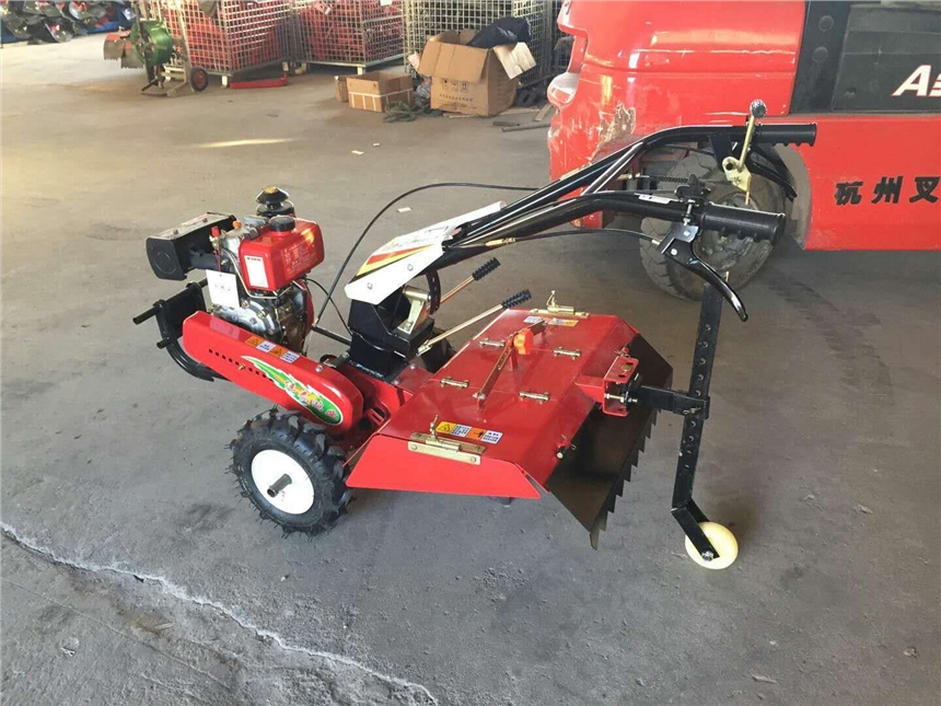 旋耕机主要用于水稻田和蔬菜地,也用于果园中耕。重型横轴式旋耕机,耕深可达20~25厘米,多用于开垦灌木地、沼泽地和草荒地的耕作。工作部件(见图)包括旋耕刀辊和按多头螺线均匀配置的若干把切土刀片,由拖拉机动力输出轴通过传动装置驱动,常用转速为190~280转/分。刀辊的旋转方向通常与拖拉机轮子转动的方向一致! 山地旋耕除草机 背负式锄草机 除草机批发