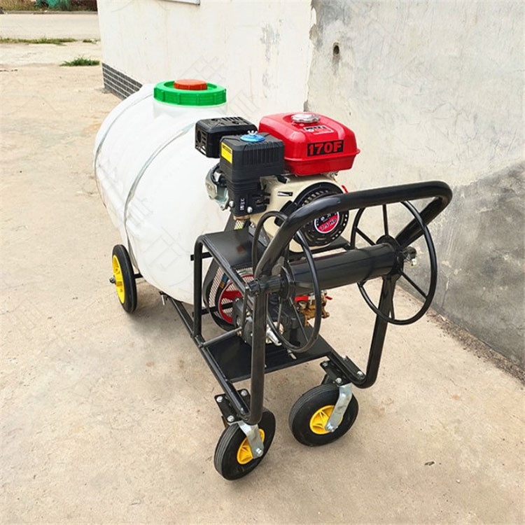 高压打药机又名高压自动喷雾器,汽油喷雾机的优点:效率高(可达普通手摇喷雾器的3到4倍)、劳动强度低、可连续作业。易损件少维修率低,基本无使用成本。产品主要适用于农业、水稻、果园、花圃苗木、蔬菜基地等喷药防除治病虫害及抽水灌溉等作业,也可用于清洗车辆公共场所,垃圾场地以及畜牧业等喷药杀菌消毒。动力、药泵、喷枪可任意组合,满足不同层次及市场需要。特有回液搅拌装置,喷药、消毒前后效果一样。滚珠卷管器,特别轻便,省力。