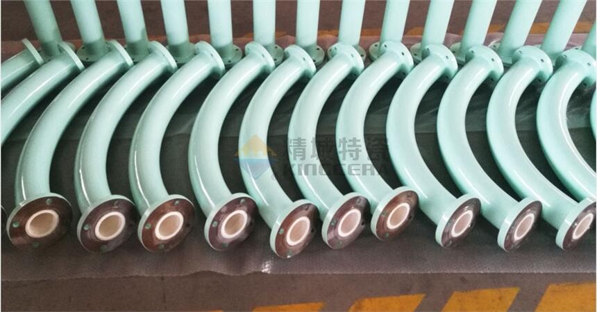 2、弯管内部陶瓷管根据钢管弧度放样,弧形设计,陶瓷间设计为子母扣形式,相互套接咬合,无直线性缝隙,物料不容易侵蚀;