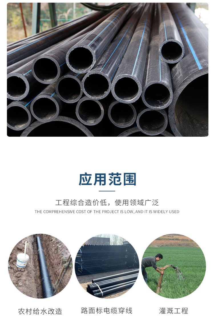 厂家批发hdpe给水管自来水管供水用PE顶管pe管给水管厂家