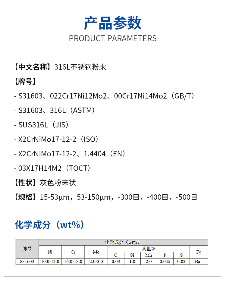 产品名称 | 316L奥氏体不锈钢粉末 | ||