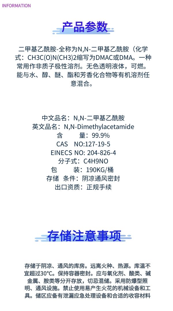 现货供应N,N-二甲基乙酰胺 大厂货源 工业级DMAC 精细化工原料 新桶包装DMAC出口现货 量大批发 FOB CFR EXW 满足客户的不同需要