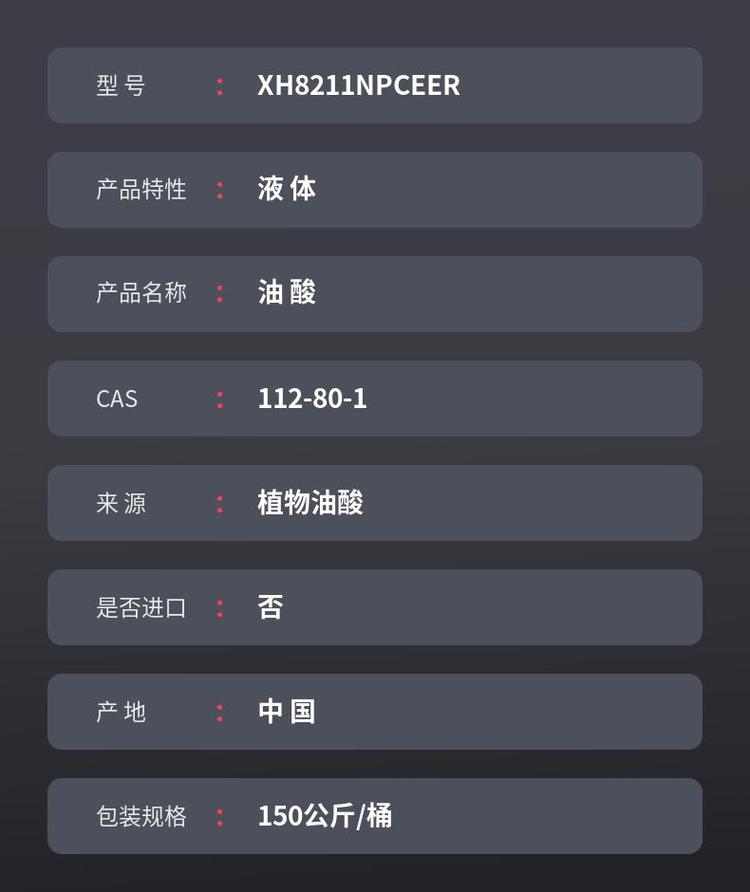 供应马来西亚椰树牌油酸马来椰树植物油酸工业级油酸十八烯酸
