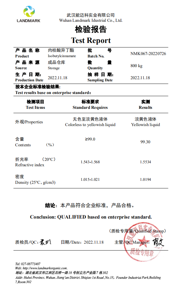 产品名称 | 肉桂酸异丁酯,3-苯基丙烯酸异丁酯 | ||