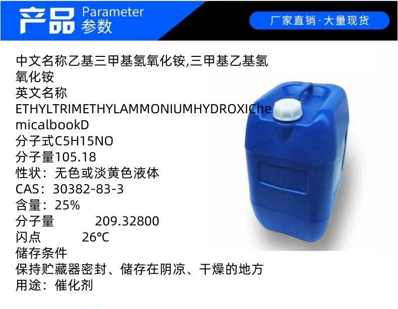 东昕牌 三甲基乙基氢氧化铵 30382-83-3 催化剂 1公斤/瓶 CAS号 | 30382-83-3 | ||