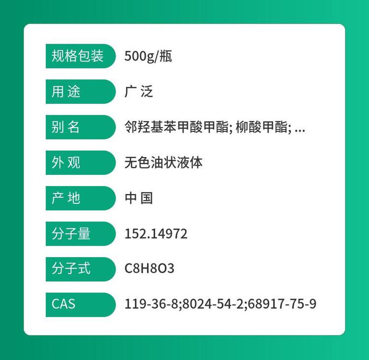 含量99 分子量152.14972 广泛 无色油状液体 500g/瓶 水杨酸甲酯 品牌其他