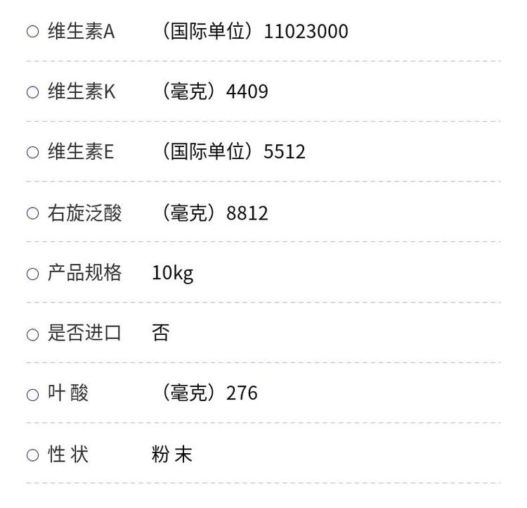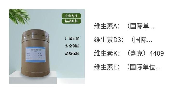 主要成分 | 维生素A、维生素E、维生素D3、维生素K3等;载体 | 无水葡萄糖 | |