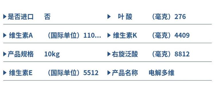 主要成分 | 维生素A、维生素E、维生素D3、维生素K3等;载体 | 无水葡萄糖 | |