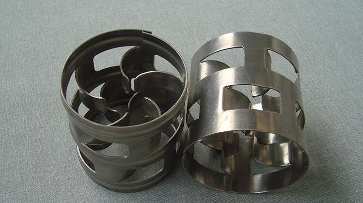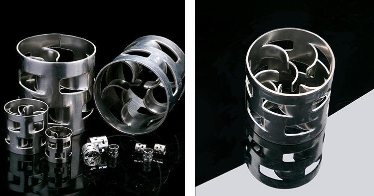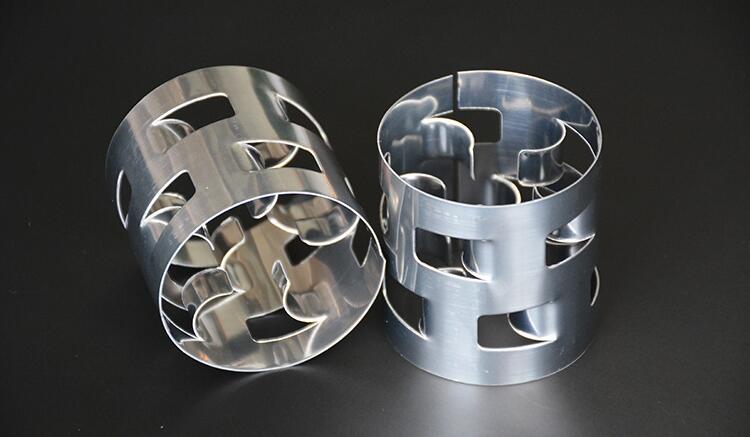 产品概述:金属鲍尔环填料是德国BASF公司开发的采用金属薄板冲制而成,在环壁上开出了两排带有内伸舌叶的窗孔。每排窗孔有五个舌叶,每个舌叶弯向环内,指向环心,在中心处几乎相搭,上下两层窗孔的位置相互错开,一般开孔的总面积约为整个环壁面积的35左右,由于鲍尔环填料在环壁上开了许多窗孔,使得塔内的气体和液体能够从窗口自由通过,目前鲍尔环填料是被采用的主要环形填料之一。