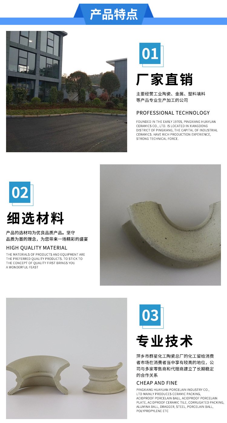 陶瓷异鞍环可用于化工、冶金、煤气、环保等行业的干燥塔、吸收塔、冷却塔、洗涤塔、再生塔等。