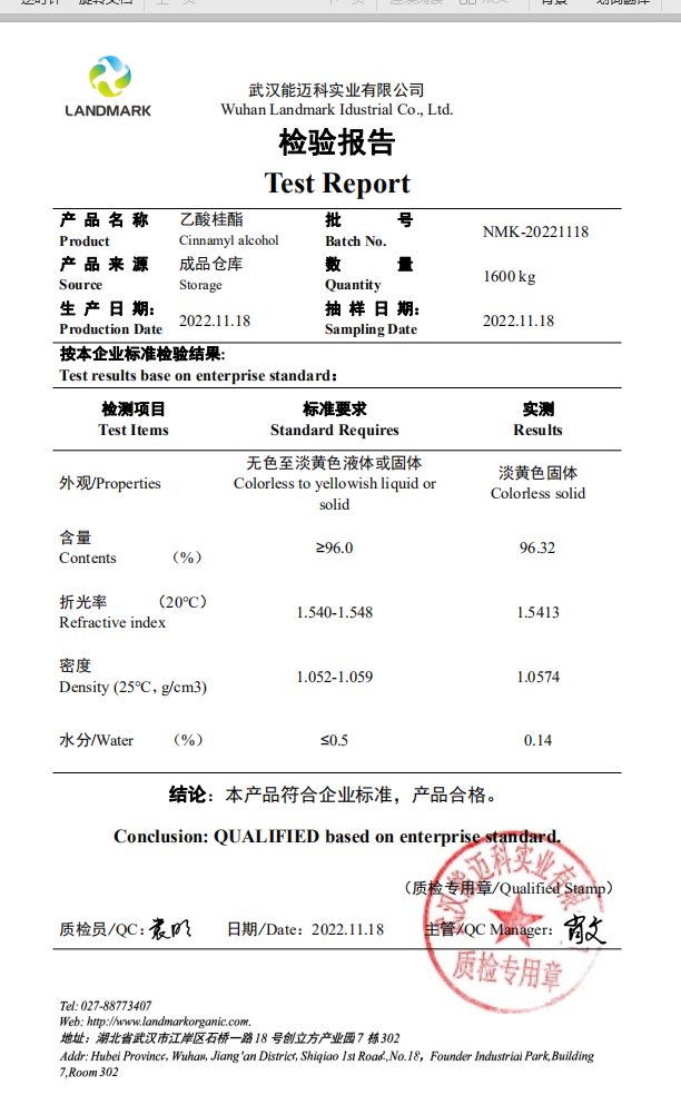 乙酸桂酯98103-54-8乙酰桂皮酯修饰剂香精200KG塑料桶能迈科包装