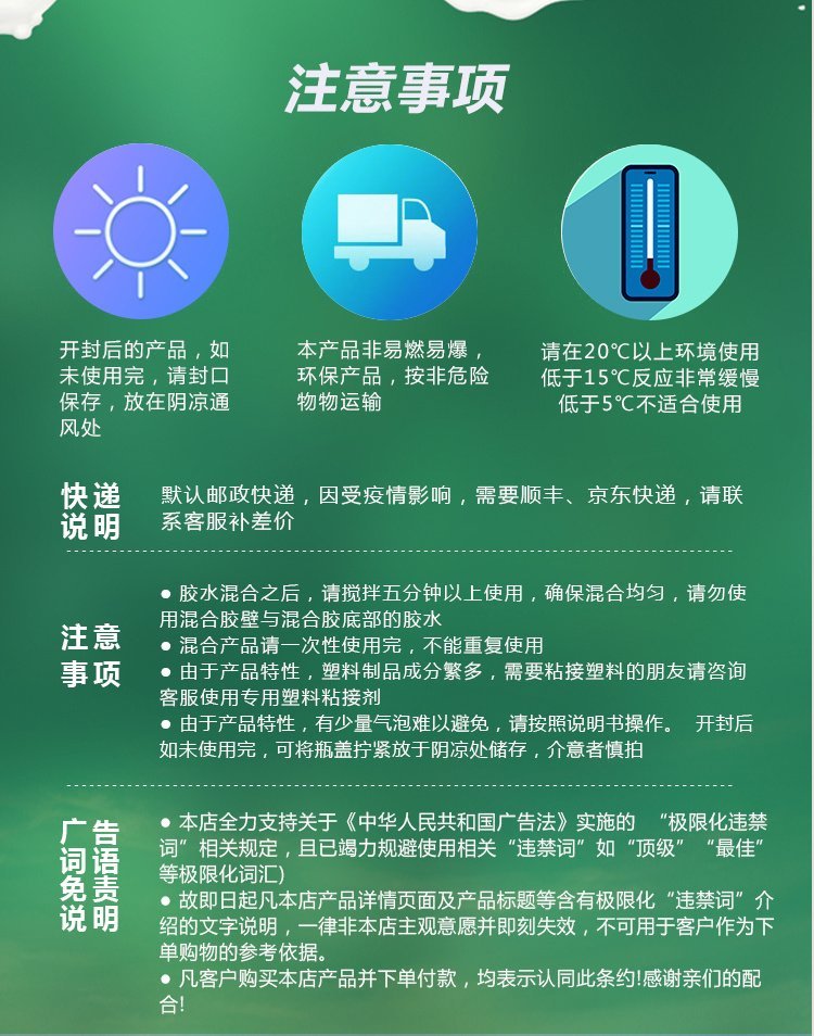 ?可用于工艺品、石材、木材、陶瓷、水泥地面、墙体等的裂缝的修补和灌缝,对材料有补强的作用,可修复较大的缺陷。由于颜色透明耐黄变性能好,也可以用在浅色工艺品的胶接以及水晶滴胶等。