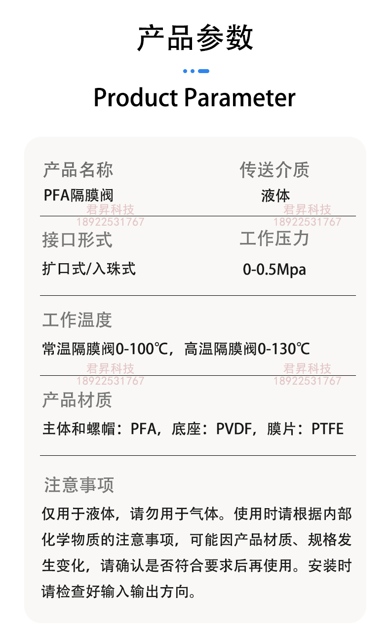 君昇科技PFA材质隔膜阀 1/4~1寸规格 可加工定制 规格 | 1/4~1寸 | ||