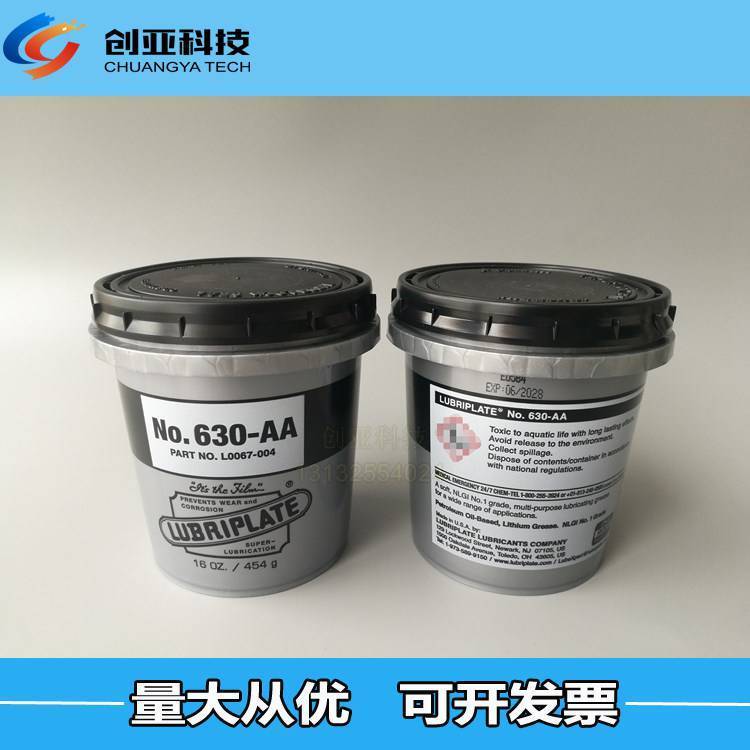 LUBRIPLATE No. 630-AA 多用途锂基润滑脂,本产品为通用的锂基、多用途润滑脂,能满足多种润滑需要,所以能减少库存的压力。具有高的保护膜强度,/耐压,的防水、防蒸汽及适应其它恶劣情况的性能。此产品NLGI稠度等级是1,工作锥入度为310/340,滴点是193℃。
