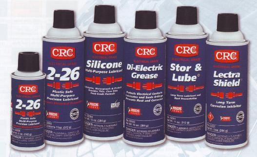1、润滑剂系列:CRC-03035食品级水基硅质润滑剂,CRC-05005CW路路通防锈润滑剂,CRC-05005CR 5-56多功能防锈润滑剂,CRC-02005/02006/02009 2-26电器防潮润滑防锈,CRC-03003 3-36 润滑防锈剂,CRC-03005/03006/03009 3-36工业级润滑防锈剂,CRC-03160/03162 3-36超薄膜润滑防锈剂,CRC-03030高压硅质润滑剂(乾性),CRC-03040/03041食品级硅质润滑剂(乾性),CRC-03045多功能抗锈润滑剂(含铁氟龙),CRC-03050链条钢索润滑剂,CRC-03055食品级工业用链条润滑剂,CRC-03060渗透松锈剂,CRC-03079红色复合油脂润滑剂,CRC-03080白锂油脂润滑剂,CRC-03081食品级机械油,CRC-03084乾性二硫化钼抗磨润滑剂,CRC-03094乾性石墨润滑剂,CRC-03040含TEFLON乾性润滑剂,CRC-05035粘性油脂润滑剂,CRC-3055浓缩硅质润滑剂Silicone808,CRC-02094电子硅质润滑剂,CRC-03082高电压绝缘脂,CRC-03083焊接防飞溅喷剂,CRC-03204工业级滑槽润滑剂;