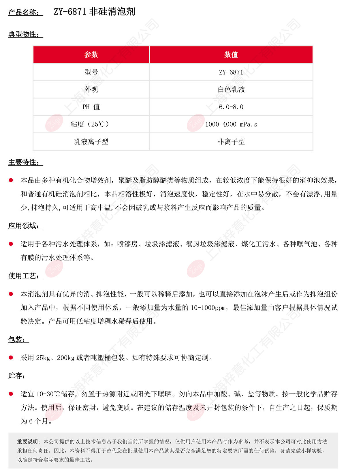 产品名称 | ZY-6871非硅消泡剂 | ||
