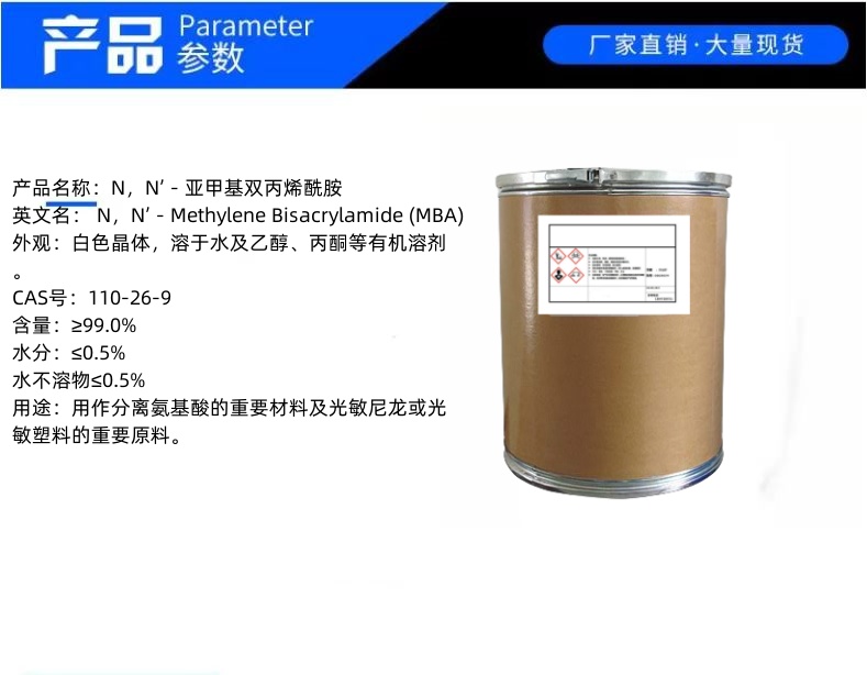 N,N-亚甲基双丙烯酰胺 99 110-26-9 白色晶体 1公斤/袋 CAS号 | 110-26-9 | ||