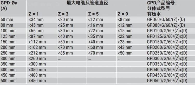 我们的橡胶压紧式密封组件还有分体式系列。分体式GPD可用于电缆或管道安装完成后的后期安装。