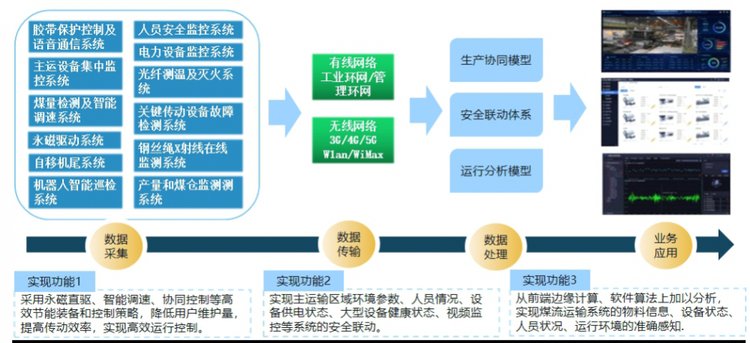 实现煤矿主运输系统的可靠、安全、高效以及无人化运行。系统主要实现三个方面的功能,一是从前端边缘计算、软件算法上加以分析,实现准确感知输煤系统中的煤流信息、设备状态、人员状况、运行环境的。二是实现主运输区域环境参数、人员情况、设备供电状态、视频监控等系统的安全联动。三是采用永磁直驱、智能调速、协同控制等高效节能装备和控制策略,降低用户维护量,提高传动效率,实现高效运行控制。