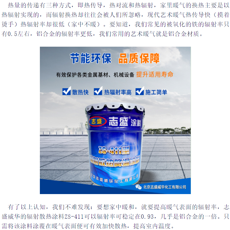 志盛威华ZS-411辐射散热降温涂料想要家中暖提高暖气辐射散热