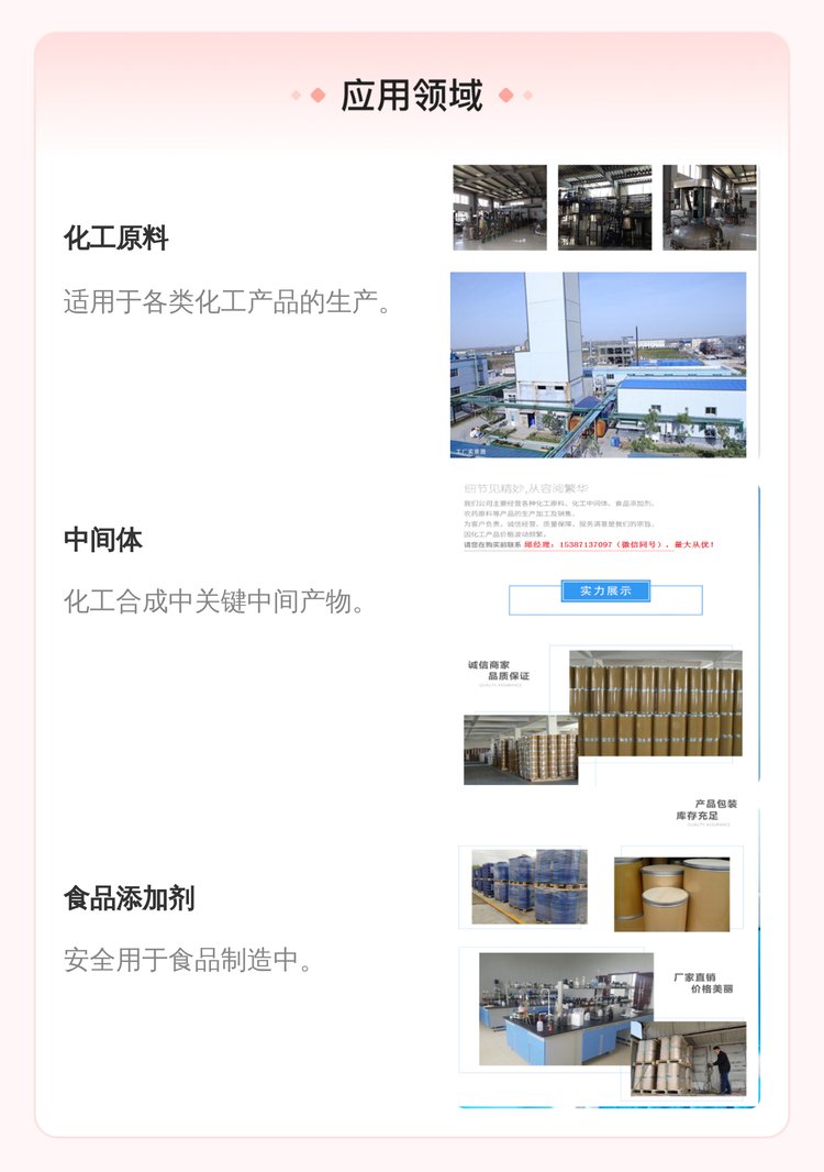 用途范围 | 化工原料、化工中间体、食品添加剂、农药原料等 | ||