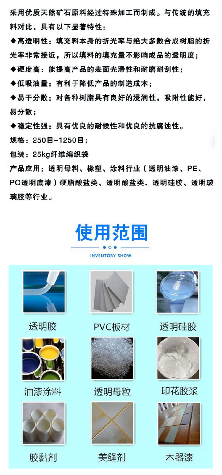 用途范围 | 透明母料、橡塑、涂料行业(透明油漆、PEPO透明底漆)硬脂酸盐类、透明酸盐类、透明硅胶、透明玻璃胶等行业 | ||