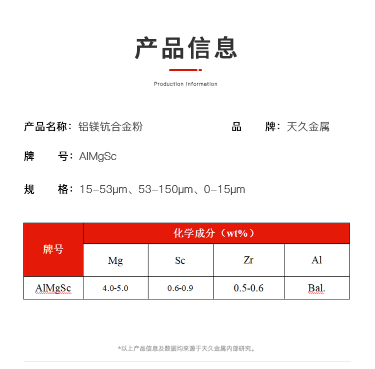 产品名称 | 铝镁钪3D打印铝合金粉 | ||