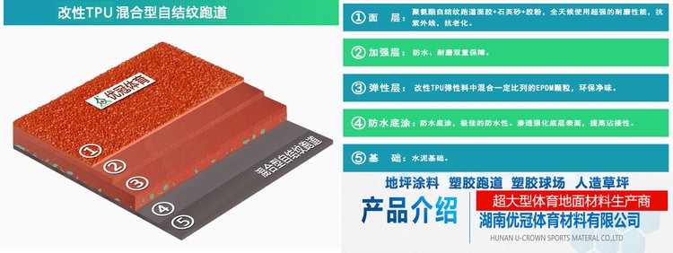 优冠彩色颗粒塑胶跑道自结纹跑道负氧离子橡胶跑道