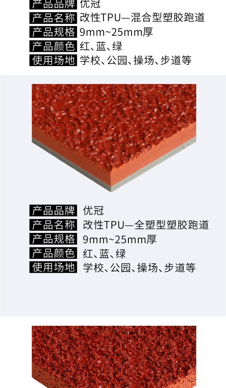 优冠户外运动塑胶跑道橡胶聚氨酯跑道EPDM健身步道