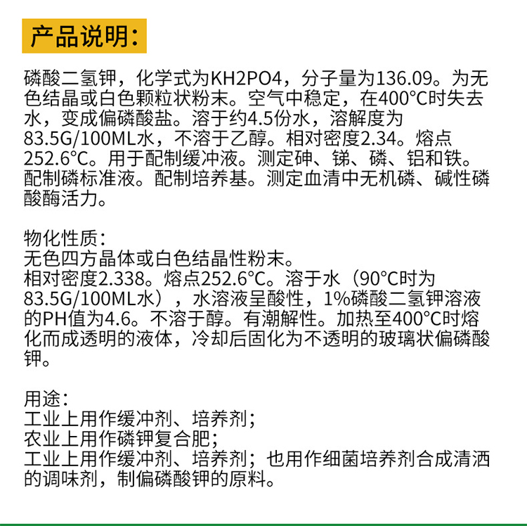 主要成分 | 磷酸二氢钾 | ||