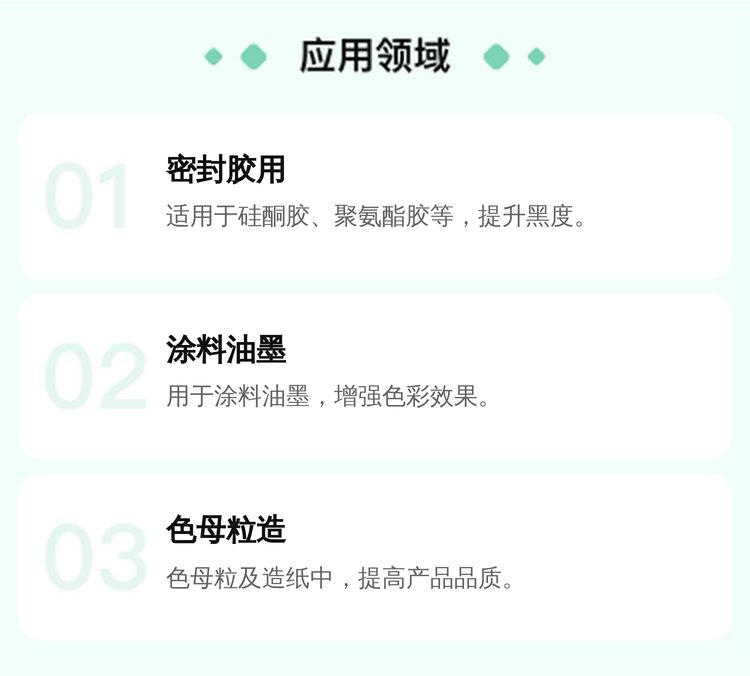 用途范围 | 各类密封胶、涂料、油墨、色母粒、造纸、水泥建材 | ||