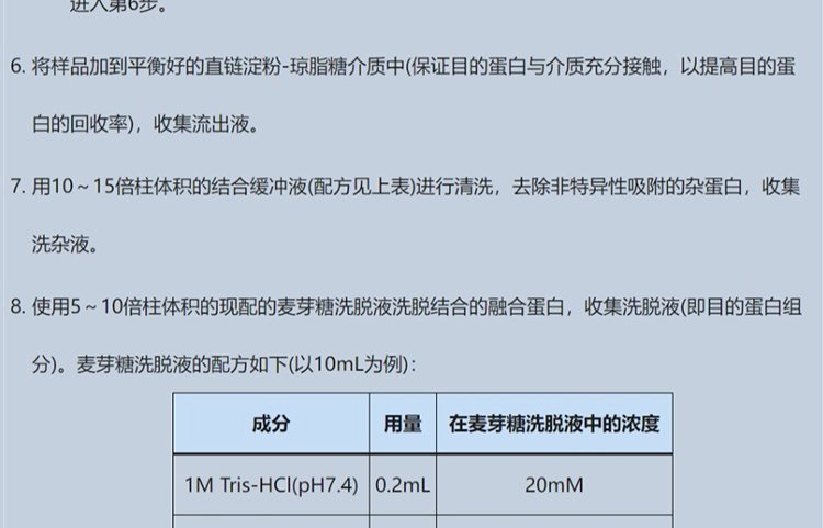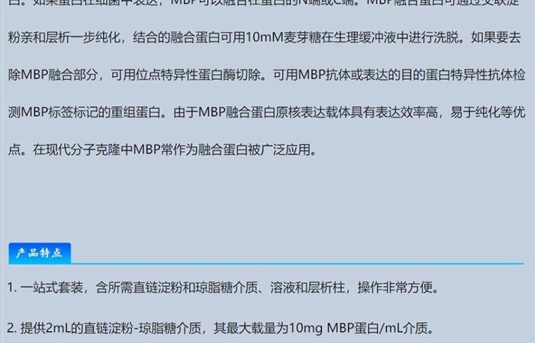 用途范围 | MBP融合蛋白分离纯化 | ||