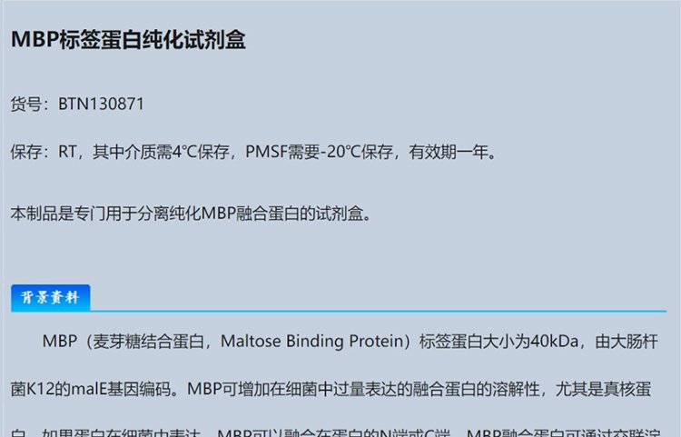 产品名称 | MBP标签蛋白纯化试剂盒 | ||