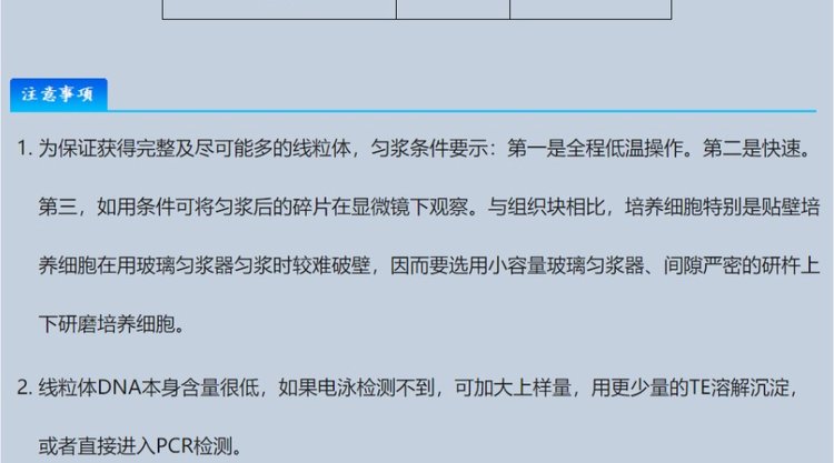 用途范围 | 适合于动物组织细胞线粒体DNA的提取制备 | ||