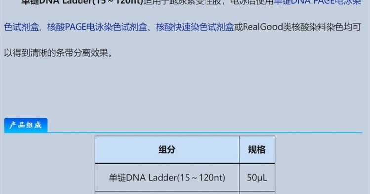 产品名称 | 单链DNA Ladder(15~120nt) | ||