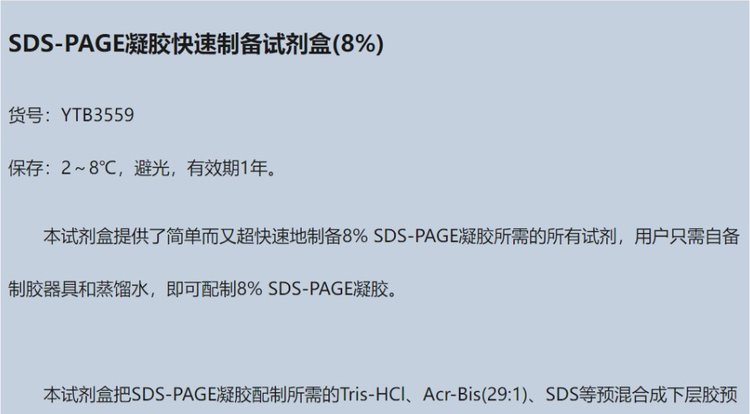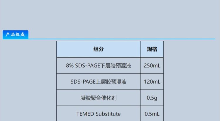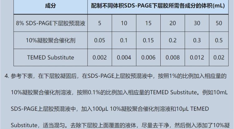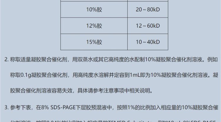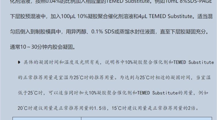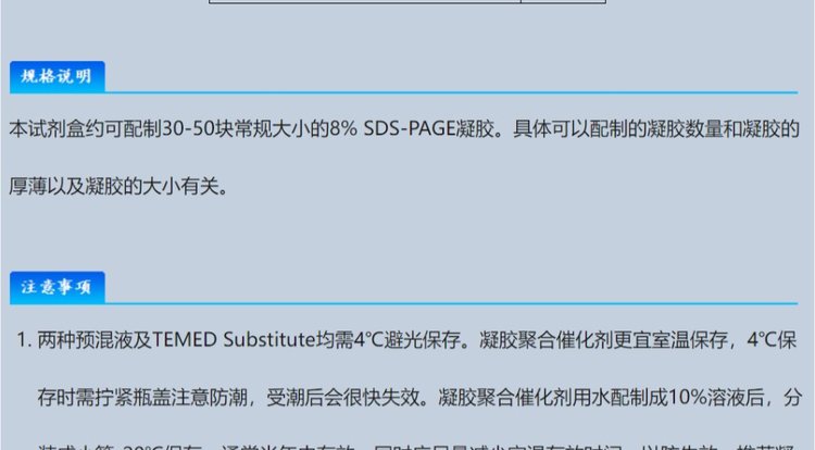 用途范围 | 快速制备8 SDS-PAGE凝胶 | ||