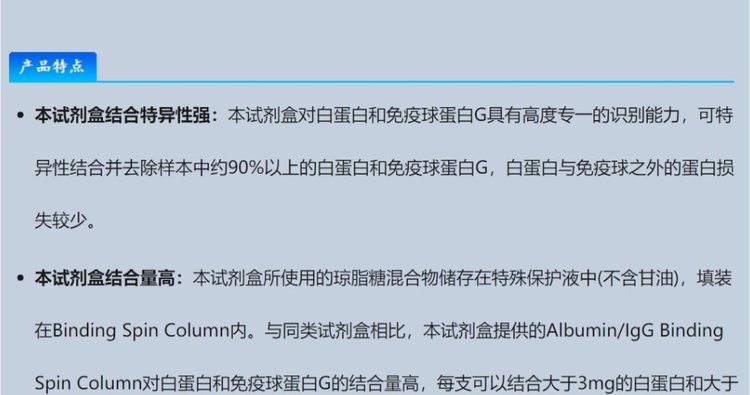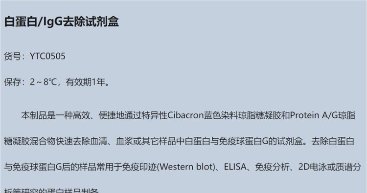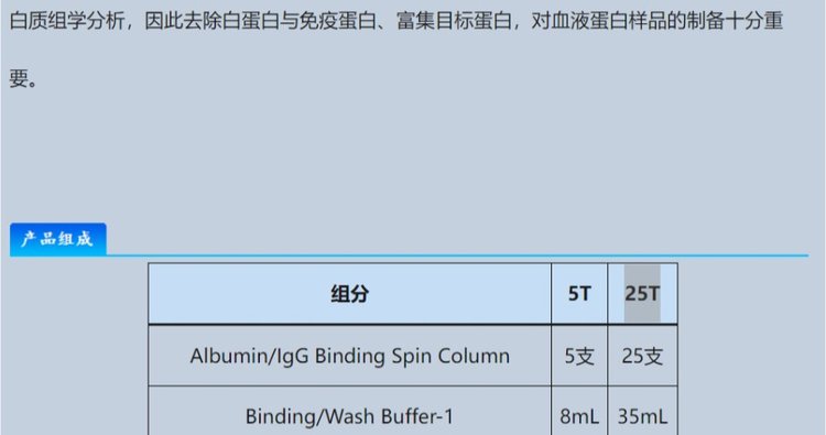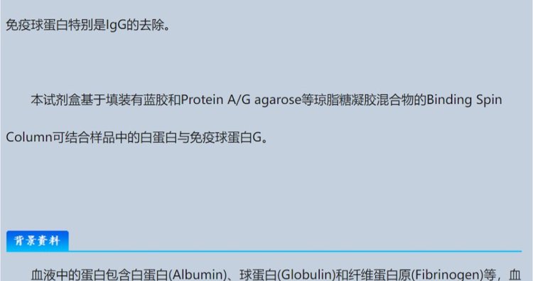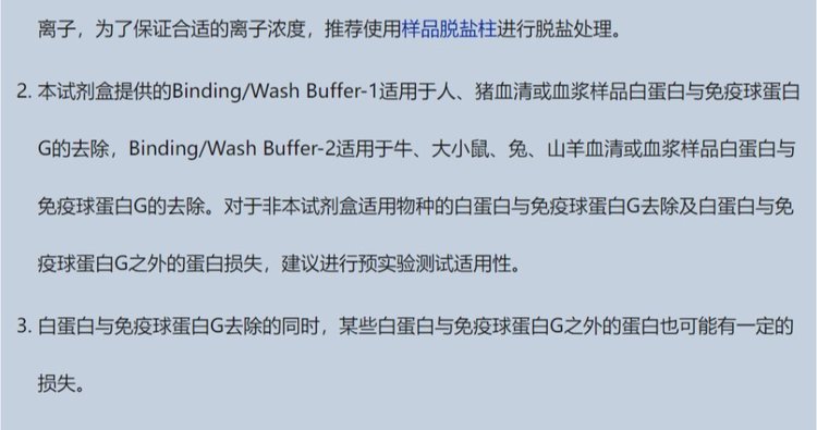 产品名称 | 白蛋白/IgG去除试剂盒 | ||