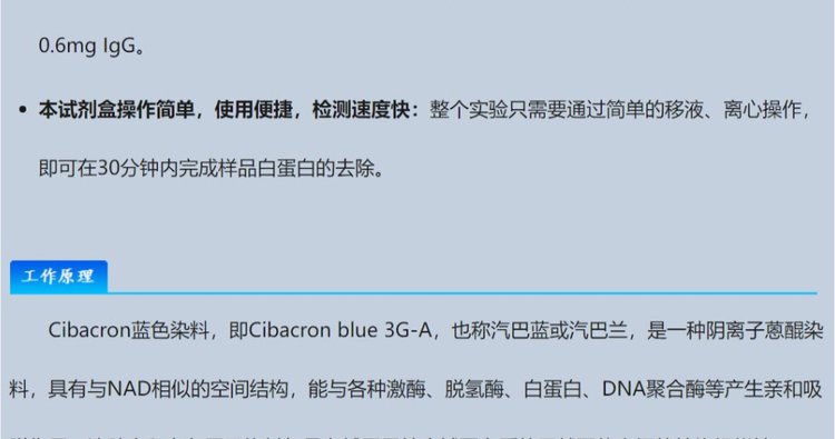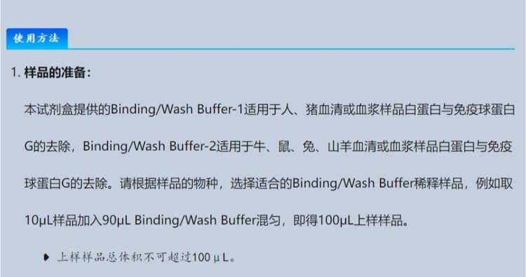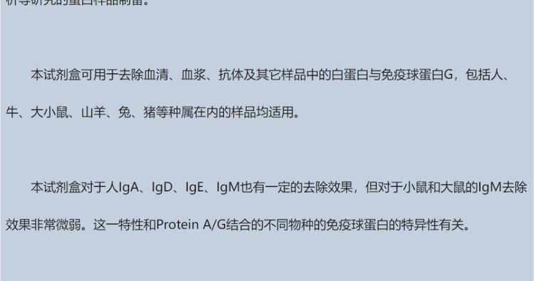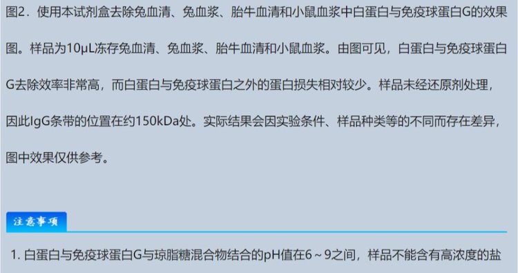 用途范围 | 快速去除样品中白蛋白与免疫球蛋白G | ||