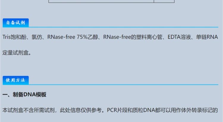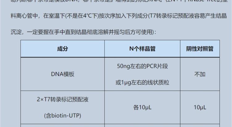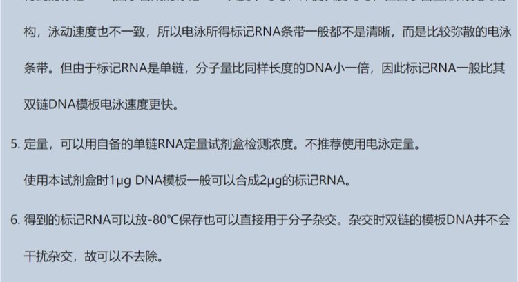 用途范围 | 制备生物素标记的RNA探针 | ||