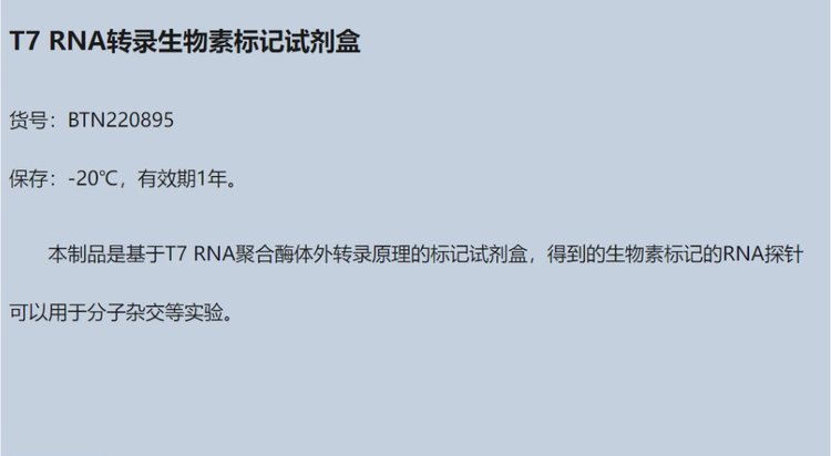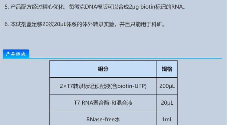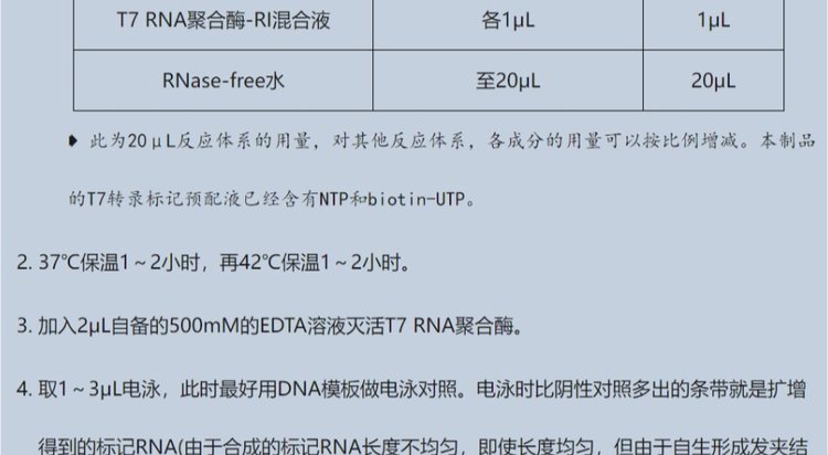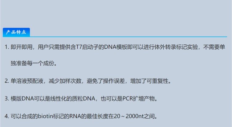 产品名称 | T7 RNA转录生物素标记试剂盒 | ||