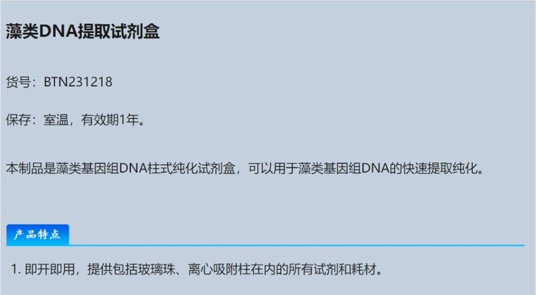 产品名称 | 藻类DNA提取试剂盒 | ||