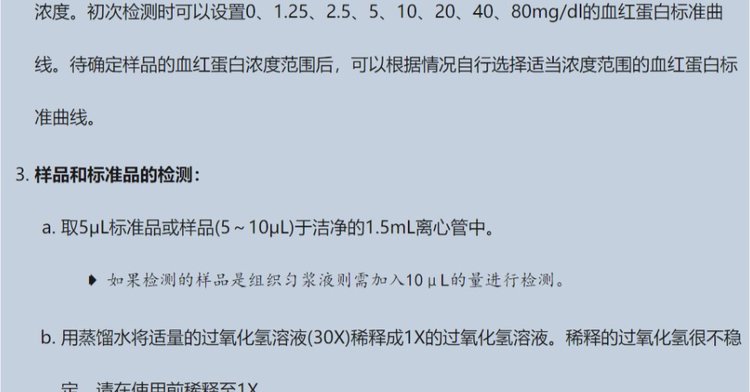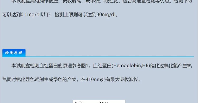 用途范围 | 用于测定血清、血浆、组织匀浆液以及尿液等样品中血红蛋白含量 | ||