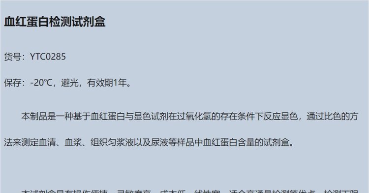 产品名称 | 血红蛋白检测试剂盒 | ||