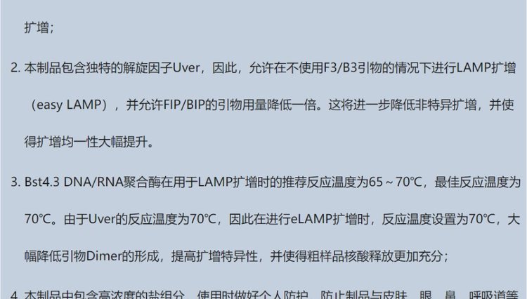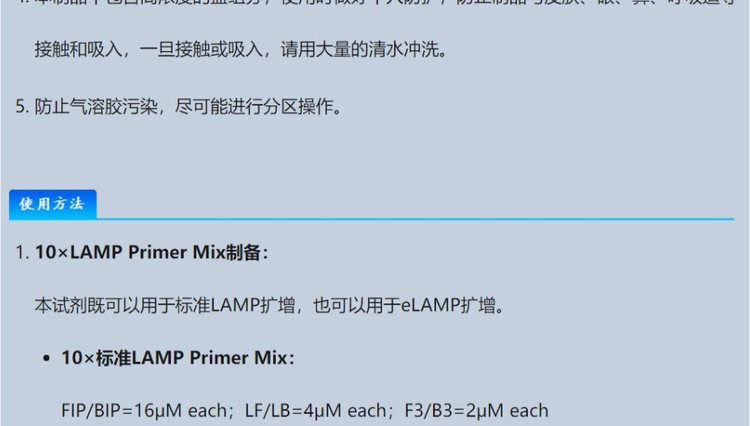 用途范围 | 用于模板DNA或RNA的LAMP扩增反应 | ||