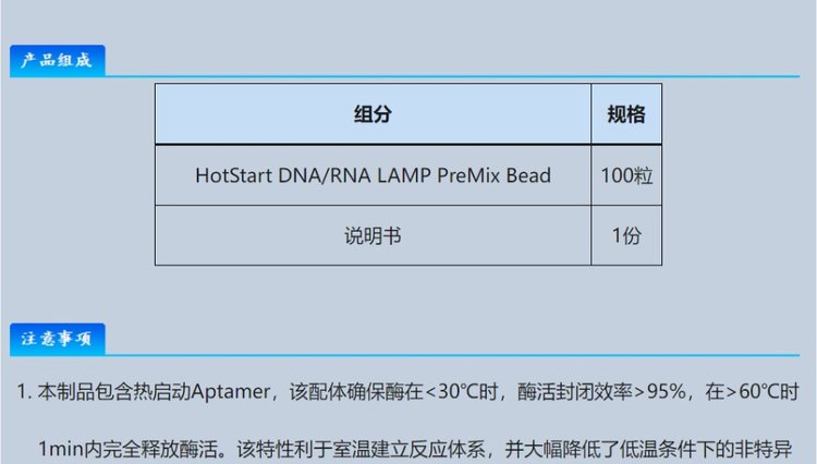 英文名称 | HotStart DNA/RNA LAMP PreMix Bead | ||