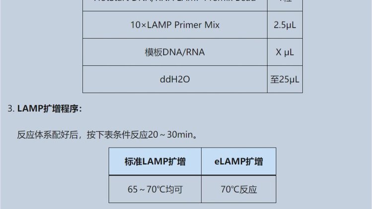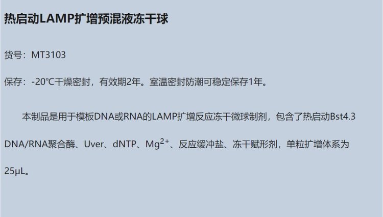 产品名称 | 热启动LAMP扩增预混液冻干球 | ||