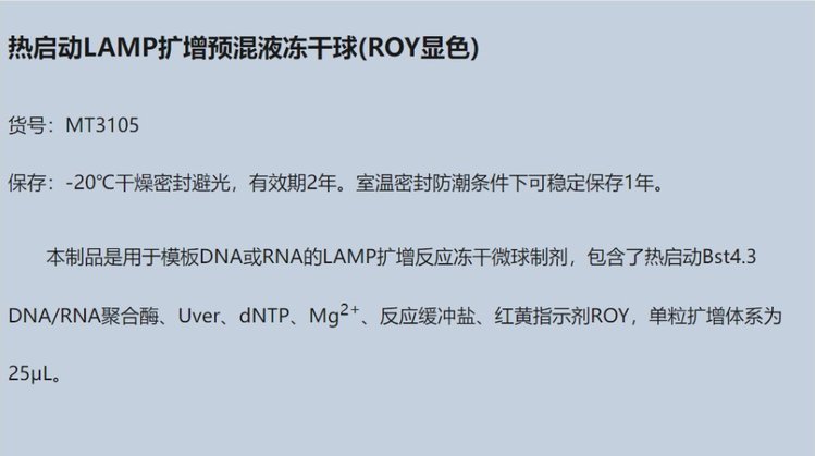 产品名称 | 热启动LAMP扩增预混液 | ||