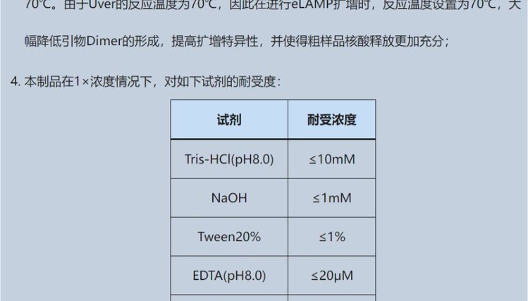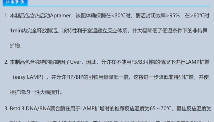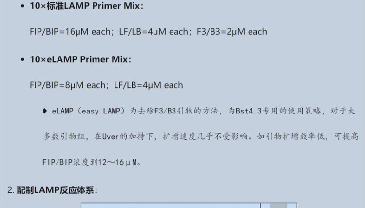 用途范围 | 用于模板DNA或RNA的LAMP扩增反应 | ||