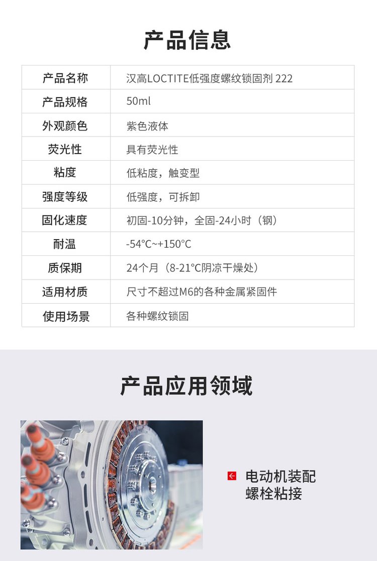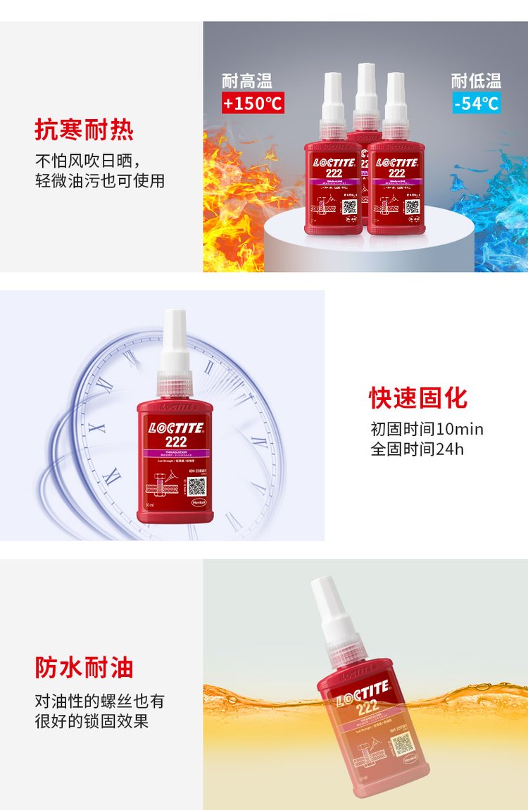 功能 | 低强度螺纹锁固,抗震防松 | ||