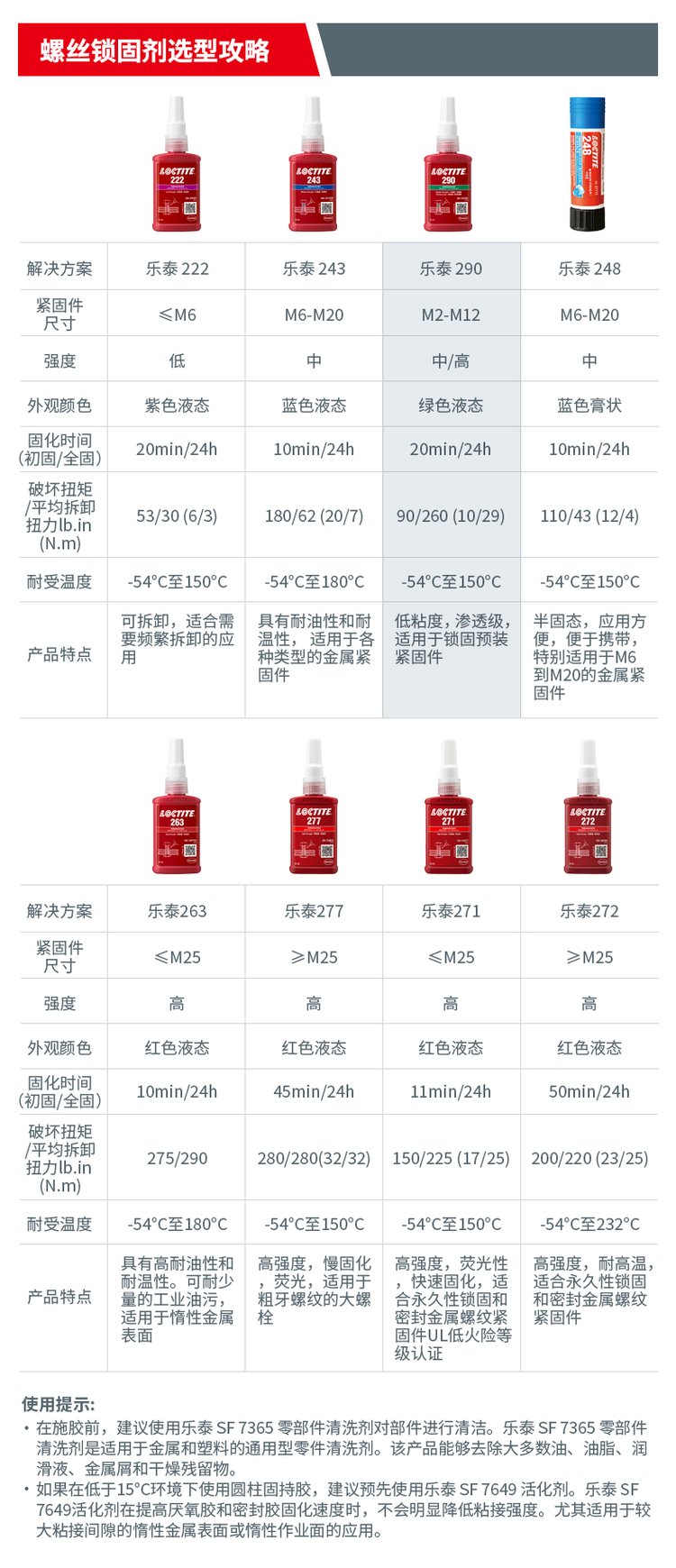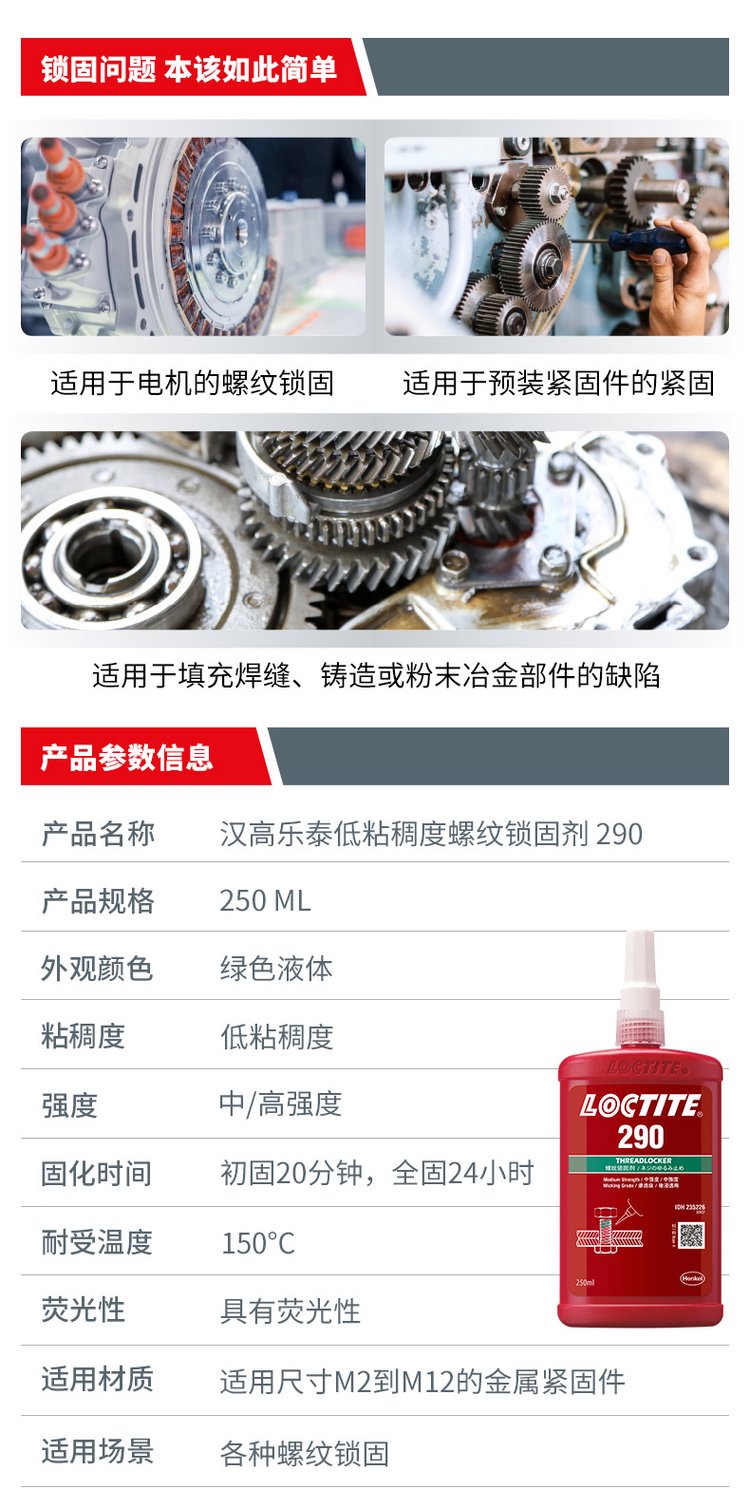 功能 | 中高强度渗透级螺纹锁固 耐高温 | ||